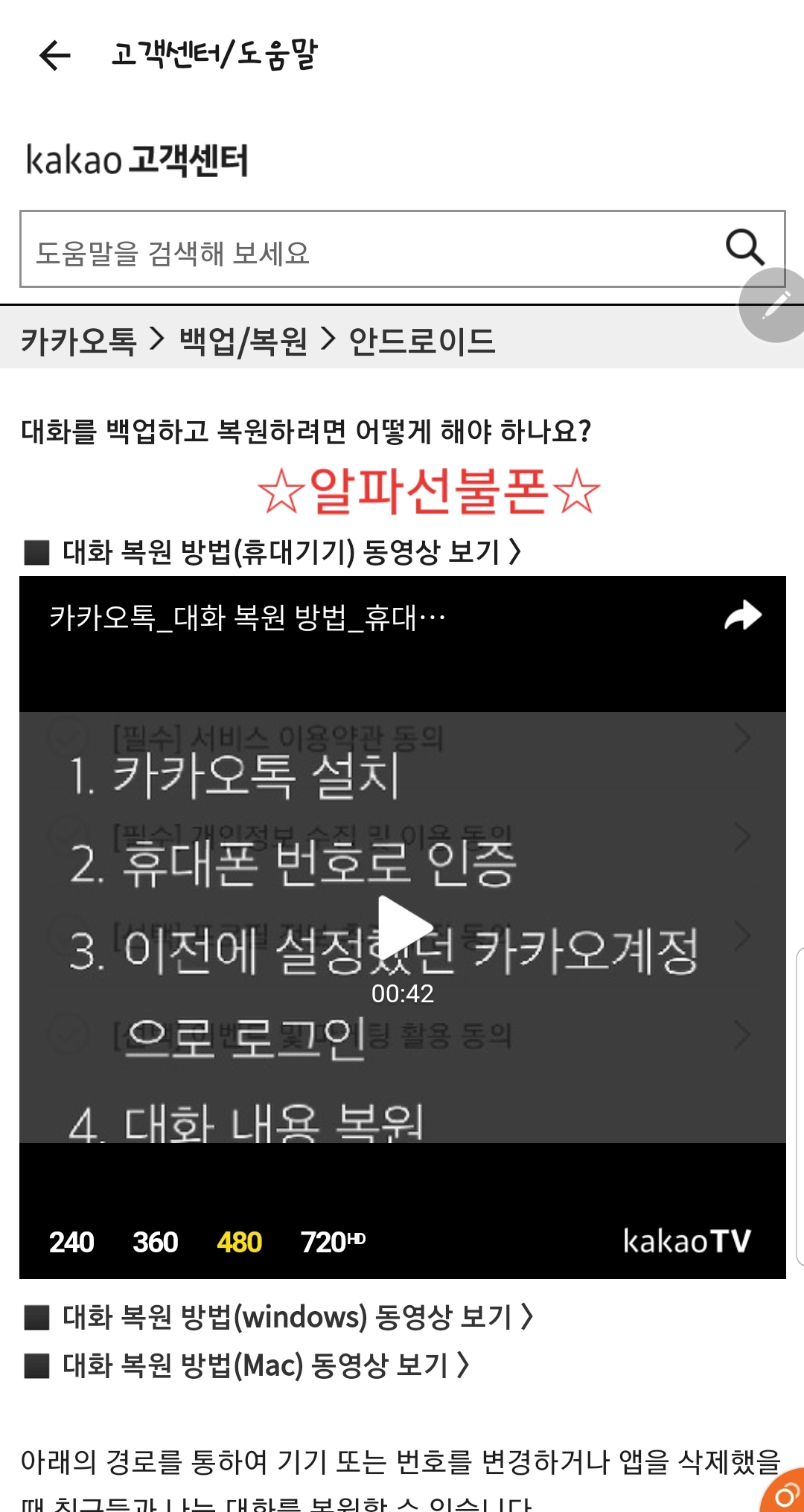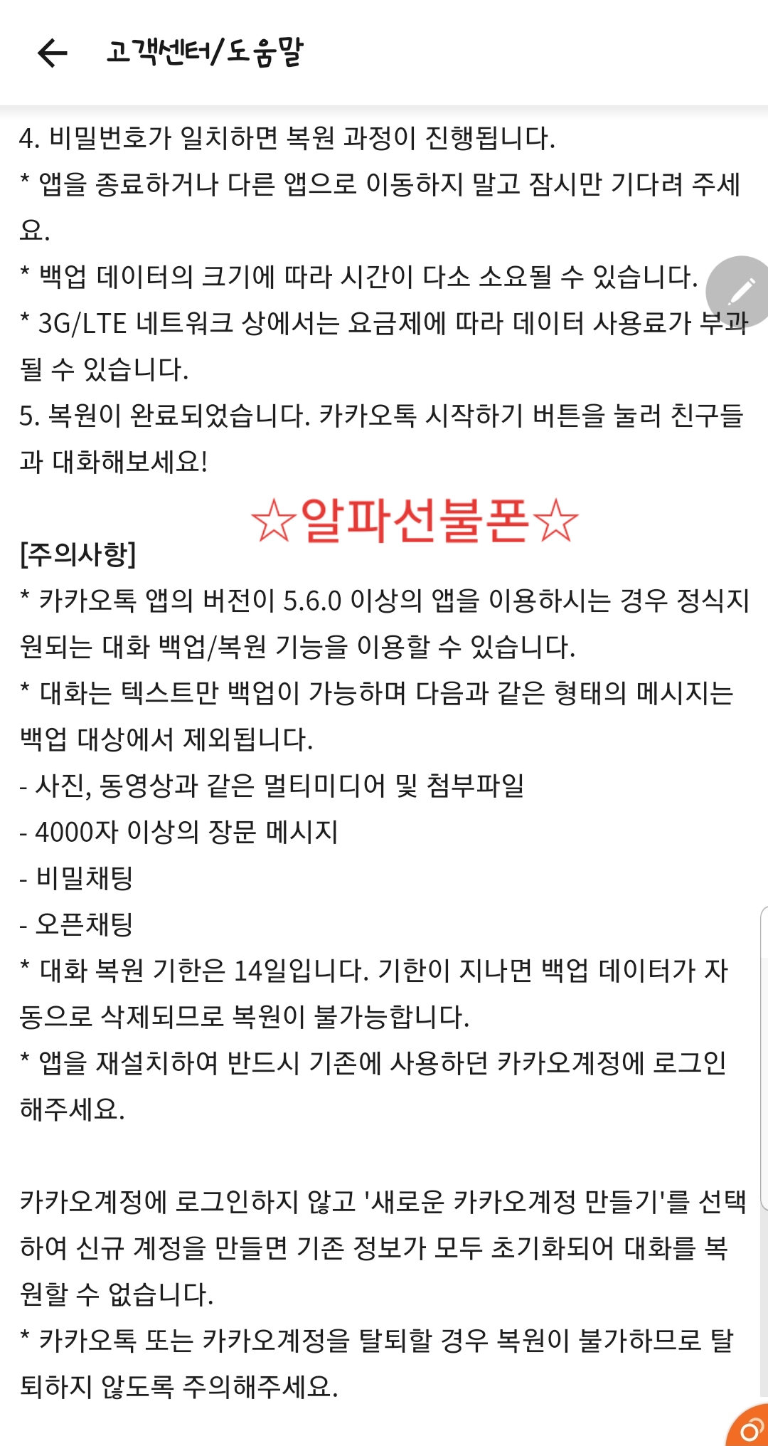 대화를 복원하는 방법까지도 상세히 나와 있으니