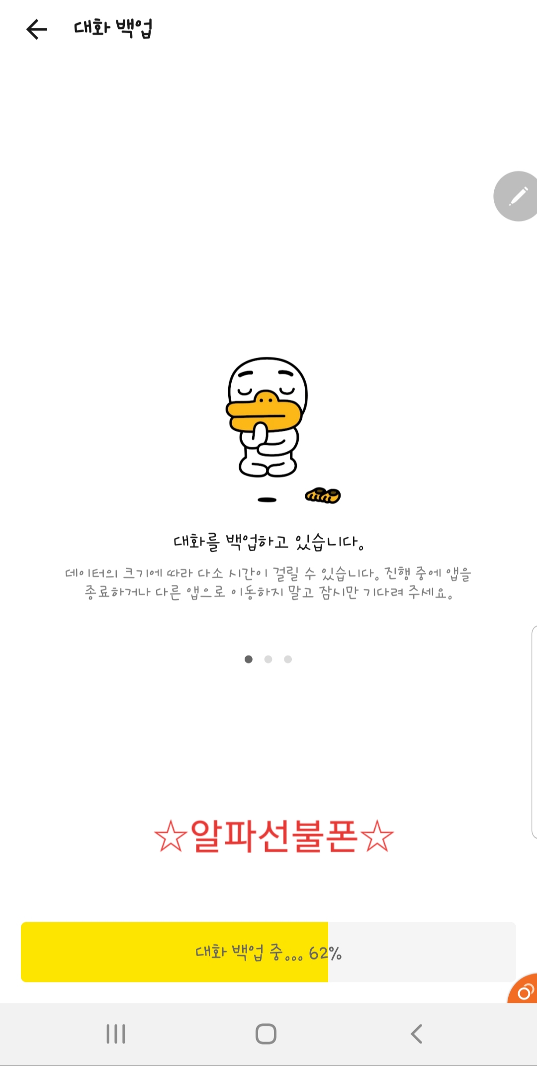 문구가 나오고 아랫쪽에 대화백업 중 진행정도를 알려 주는데요